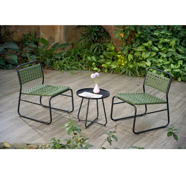 ชุดบิสโทรเครื่องจักสานสีเขียวเฟอร์นิเจอร์กลางแจ้งสีเขียวสำหรับห้องนั่งเล่นสวนโรงแรมอพาร์ทเมนท์