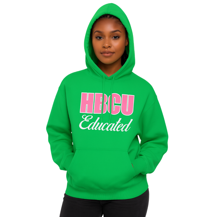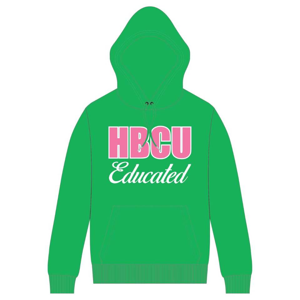 เสื้อฮู้ดสวมหัวสีเขียวผู้หญิง hbcu มีฮู้ดสีชมพูกำมะหยี่และการออกแบบปักเสื้อผ้าชีวิตชาวกรีกที่กำหนดเอง