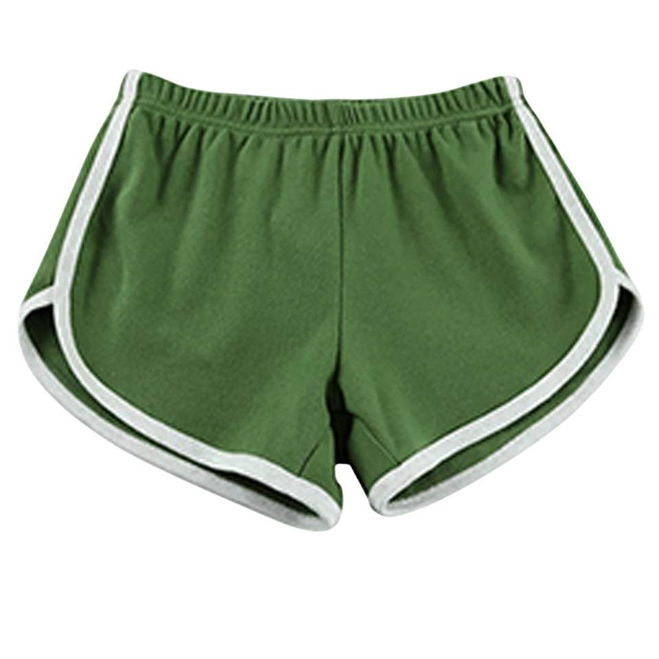 กางเกงขาสั้นวิ่งออกกำลังกายสำหรับผู้หญิงสีเขียวพร้อมแถบสีขาว ผ้ายืดเนื้อนุ่ม ใส่สบาย ชุดออกกำลังกายสำหรับออกกำลังกายในยิม