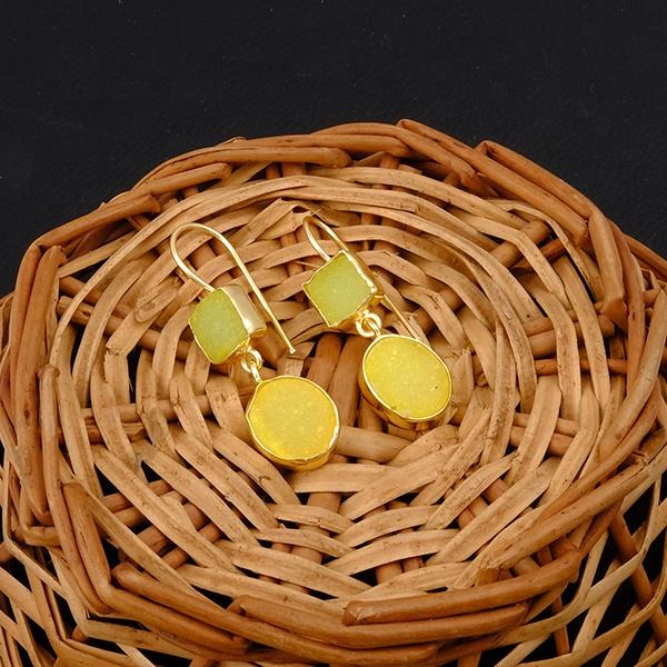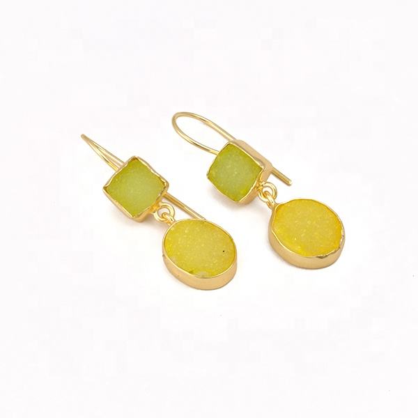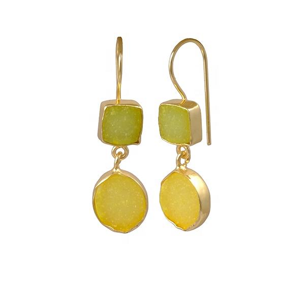 ชุดคอลเล็ตแบบตะขอชุบทองอัญมณีดรูซี่สีเขียวและสีเหลืองสำหรับเครื่องประดับทองเหลืองต่างหูห่วงต่างหูทันสมัย