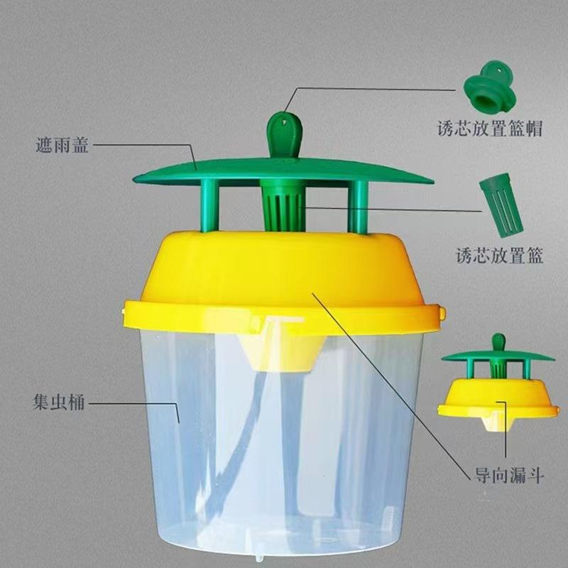 กับดักแมลงวันผลไม้สีเขียวเหลือง รูปทรงกระบอก สำหรับควบคุมศัตรูพืชกลางแจ้ง ใช้ในสวนและฟาร์ม
