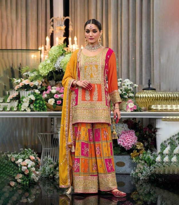 ชุดชาราร่าพิมพ์ลายดิจิทัลปักเลื่อมสีเขียวพร้อมผ้าคลุมไหล่สำหรับผู้หญิง ชุดสำหรับงานแต่งงาน งานปาร์ตี้ งานเทศกาลของชาวอินเดีย สินค้าขายดี