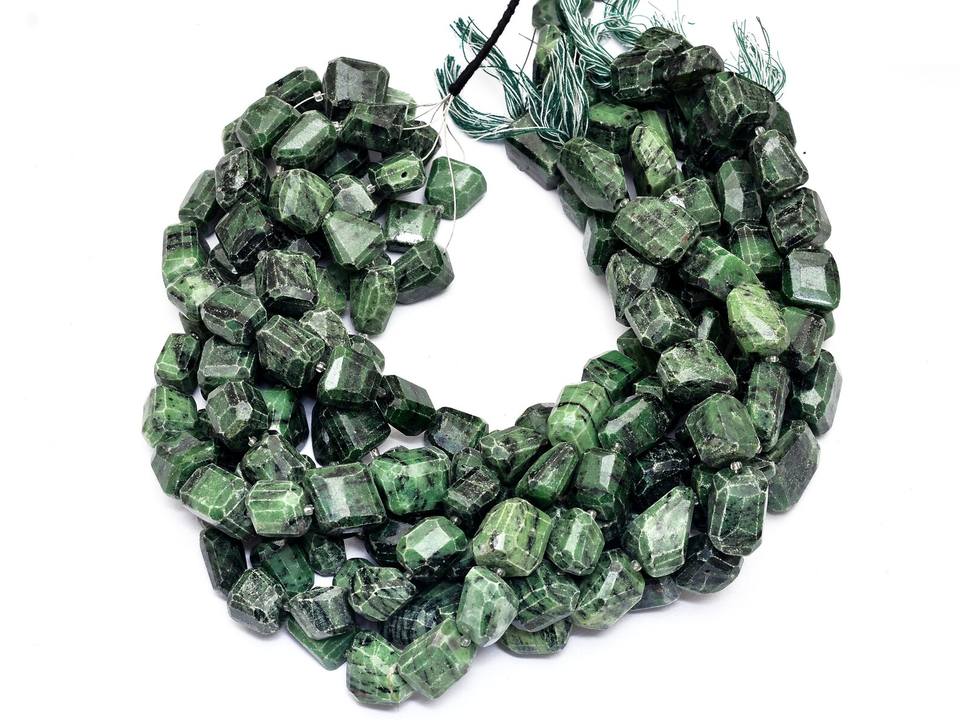 ลูกปัดพลอยโซไซต์สีเขียวขนาด 16 มม.-18 มม. ทรงเหลี่ยมธรรมชาติ ลูกปัดพลอยโซไซต์แบบขัดเงา สำหรับทำเครื่องประดับ