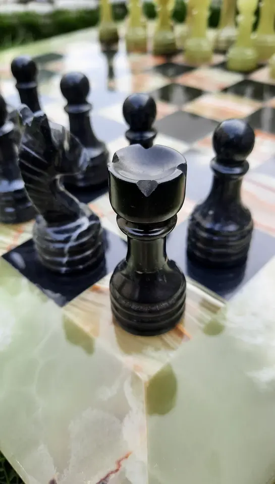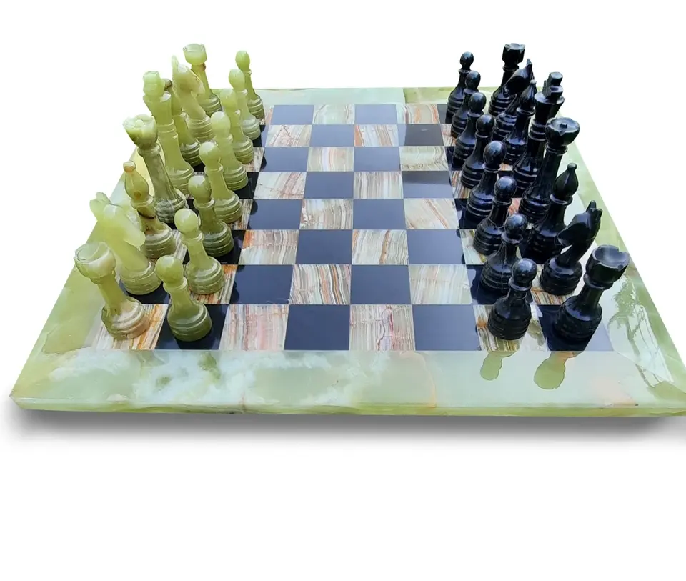 ชุดหมากรุกหินออนิกซ์สีเขียวและสีดำ, ชุดหมากรุกออนิกซ์ทำมือ, ชุดหมากรุกหินอ่อนและออนิกซ์