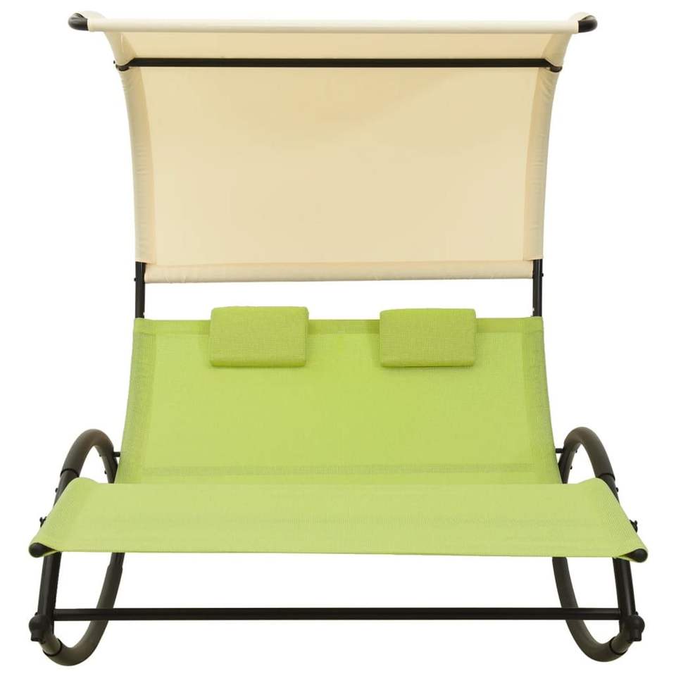เก้าอี้อาบแดดเหล็กเท็กซ์ไทล์สีเขียวและครีม