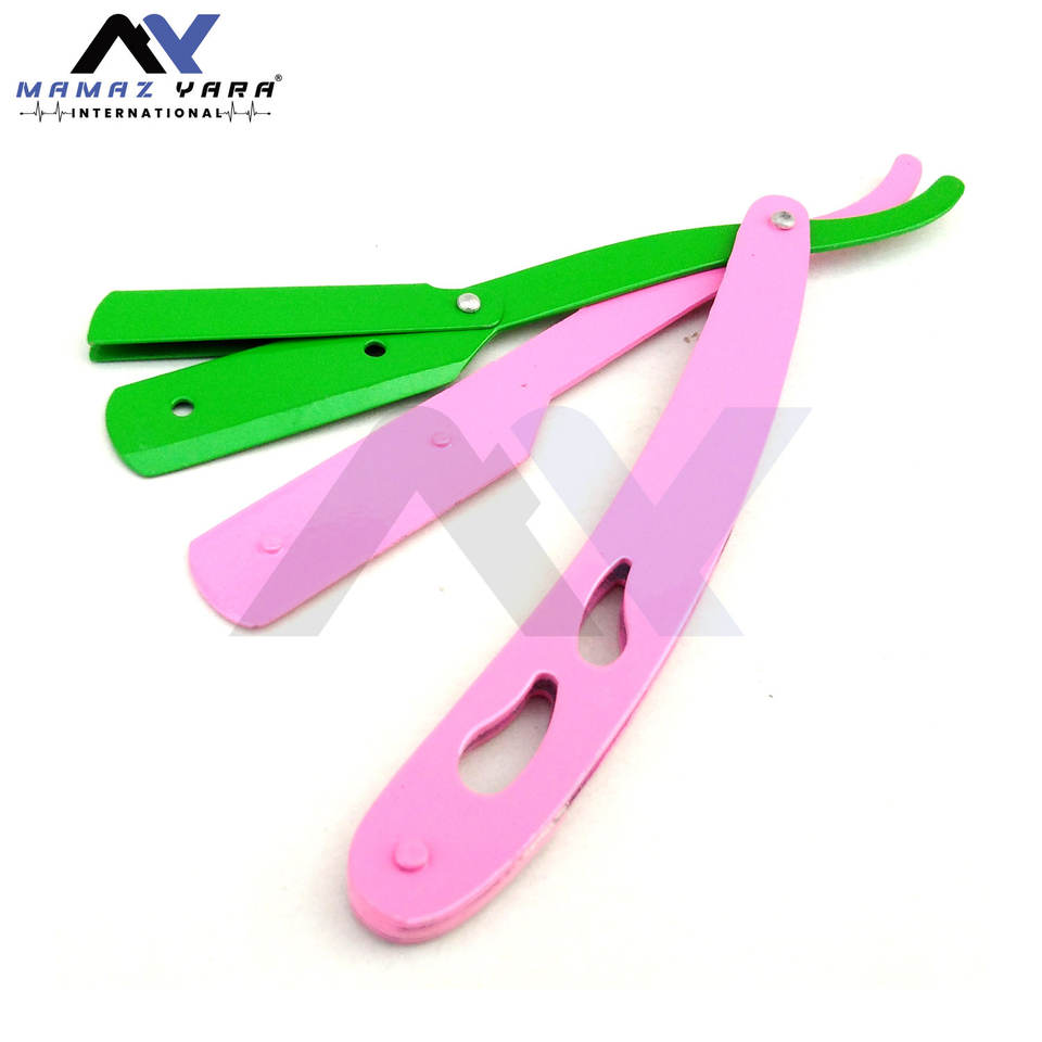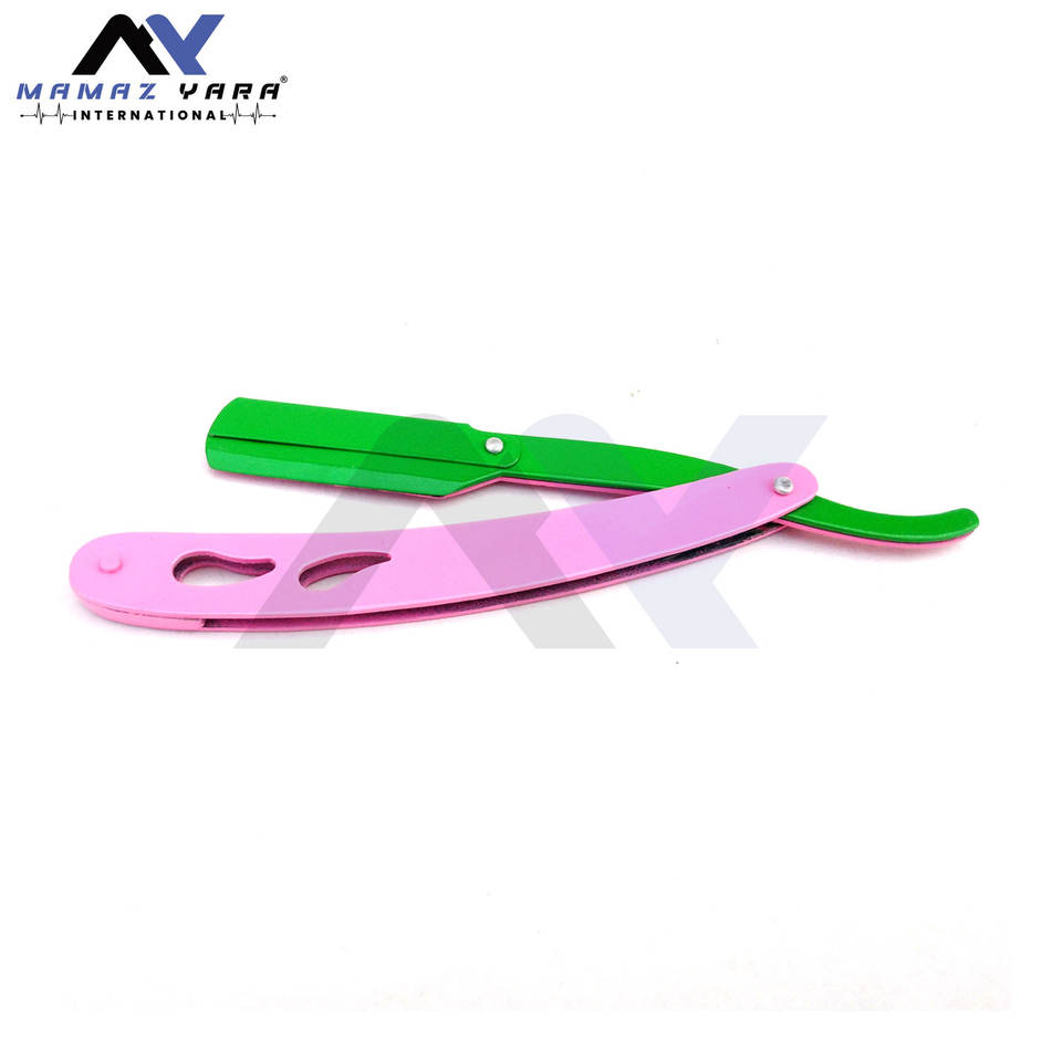 มีดโกนหนวดสีเขียวและชมพูสำหรับสุภาพสตรี พิมพ์ลายสวยงาม ราคาประหยัด แบบล็อคสวิง ปลอดภัย สำหรับผู้ชายและผู้หญิง