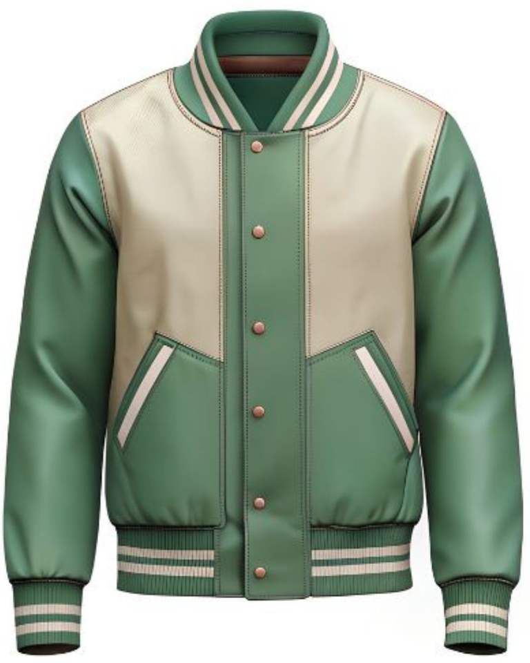 แจ็กเก็ตเบสบอลสองโทนสีเขียวสำหรับผู้ชาย