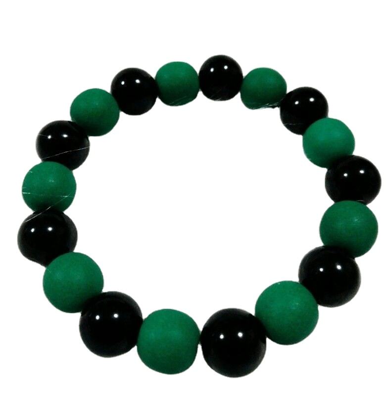 สร้อยข้อมือลูกปัดกลมสีเขียวและสีดำเครื่องประดับทำด้วยมือมีสไตล์กำไลแฟชันสุดอินเทรนด์ตัวหนาดีไซน์เรซินที่หรูหราสำหรับผู้หญิงเด็กผู้หญิง