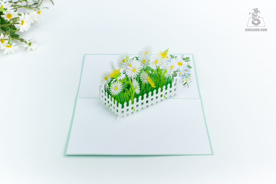 การ์ดอวยพรแบบป๊อปอัพทำมือ3D สีเขียวการ์ดของขวัญงานหัตถกรรมกระดาษงานฝีมือรูปทรงดอกไม้และต้นไม้