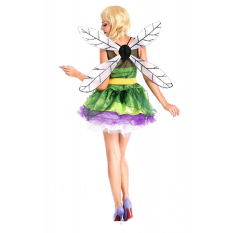 ชุดเดรสนางฟ้าสีเขียวสำหรับงานปาร์ตี้,เครื่องแต่งกายคอสเพลย์ชุดเดรส Tinkerbell นางฟ้าสีเขียวเซ็กซี่มีปีกวู้ดแลนด์