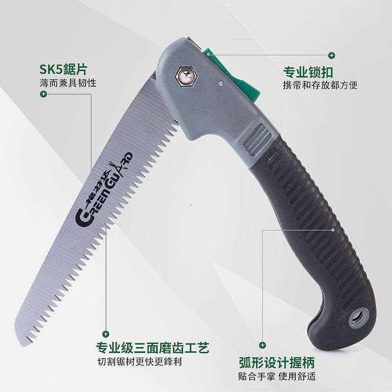 กรีนการ์ดเลื่อยมือพับได้ ใบมีดเหล็กคาร์บอนสูง 15 ซม. สำหรับตัดไม้ ตัดแต่งกิ่ง ใช้สำหรับตั้งแคมป์กลางแจ้ง
