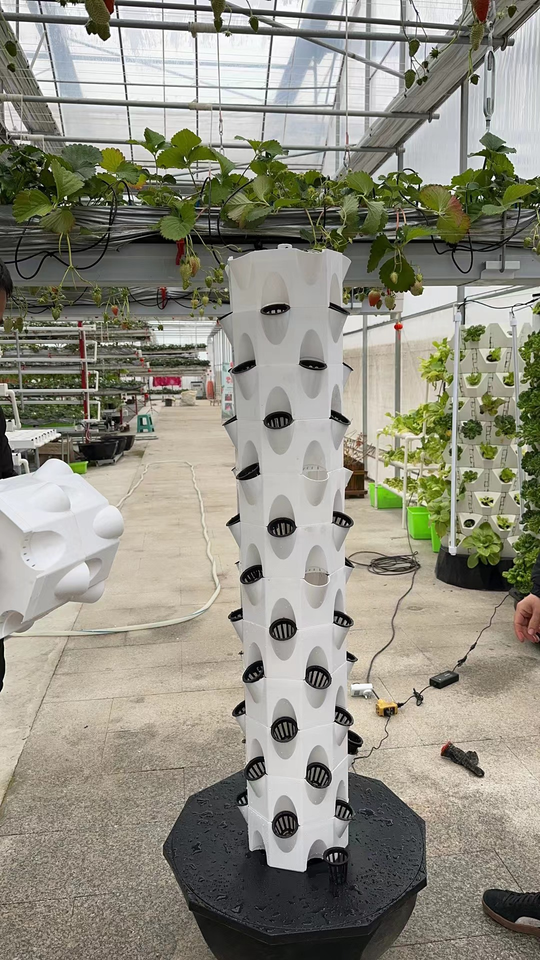 ระบบปลูกสับปะรดในเรือนกระจกแบบอควาโปนิกส์ พร้อมหอปลูกแนวตั้งในร่ม ระบบสวนแนวตั้งพร้อมปั๊ม วัสดุ PVC เกรดอาหาร มีรูหลายรู