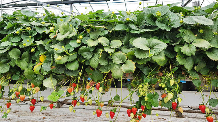 ระบบปลูกสตรอว์เบอร์รีแบบรางน้ำไฮโดรโปนิกส์ ระบบรางน้ำสำหรับสตรอว์เบอร์รี