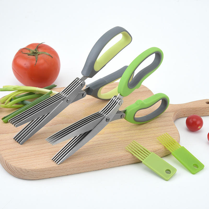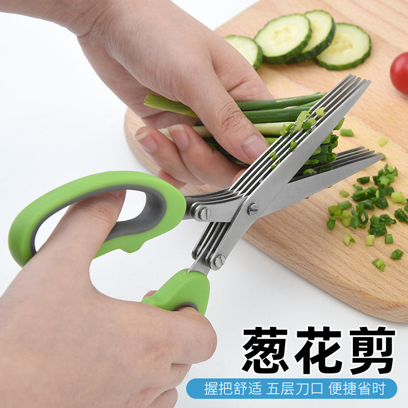 กรรไกรตัดสมุนไพร 5 ชั้น สีเทาอมเขียว สแตนเลส หัวตรง สำหรับใช้ในครัวเรือน รุ่นที่ 1 รุ่นที่ 2