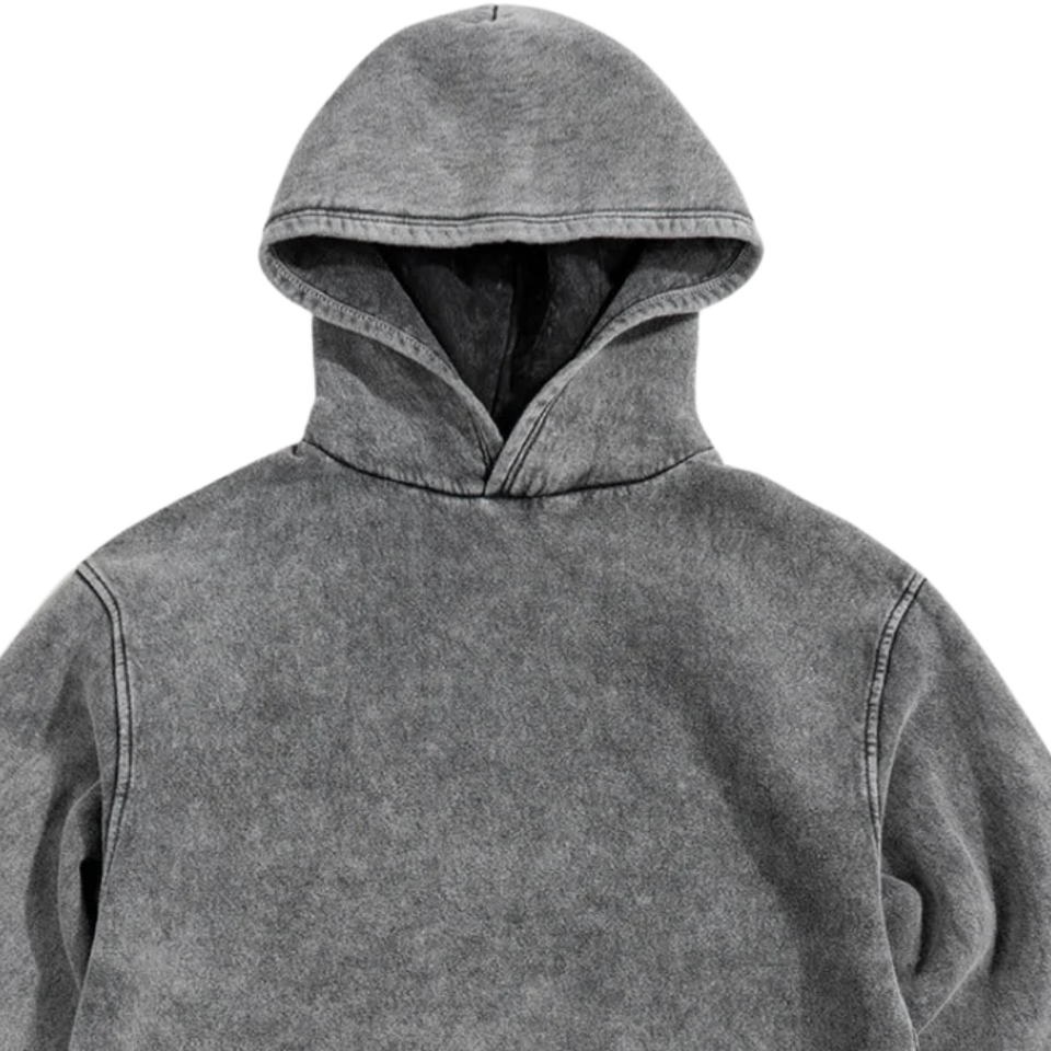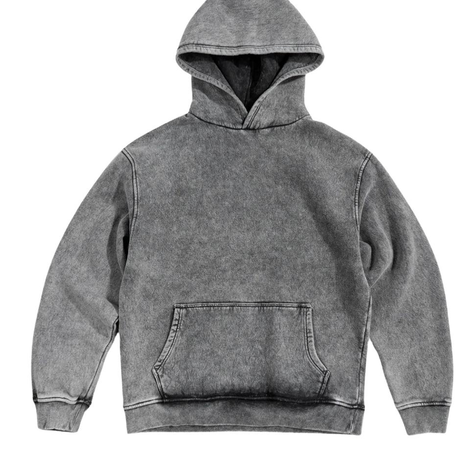 เสื้อฮู้ดเกรย์ซักลายกรดสีเทาเสื้อสวมหัวโอเวอร์ไซส์สไตล์วินเทจผ้าฟลีซผ้าฝ้ายนุ่มเสื้อมีฮู้ดสีเทา