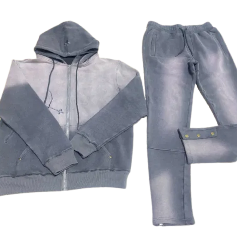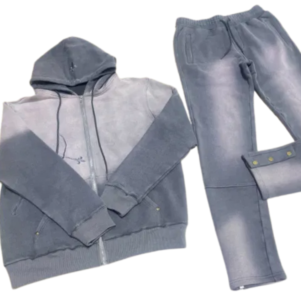 ชุดเซ็ตเสื้อฮู้ดซิปสีเทาฟอกกรดสไตล์วินเทจ พร้อมกางเกงวอร์ม ผ้าฟลีซ สำหรับผู้ชาย ชุดลำลองสตรีทแวร์ ชุดฤดูหนาว