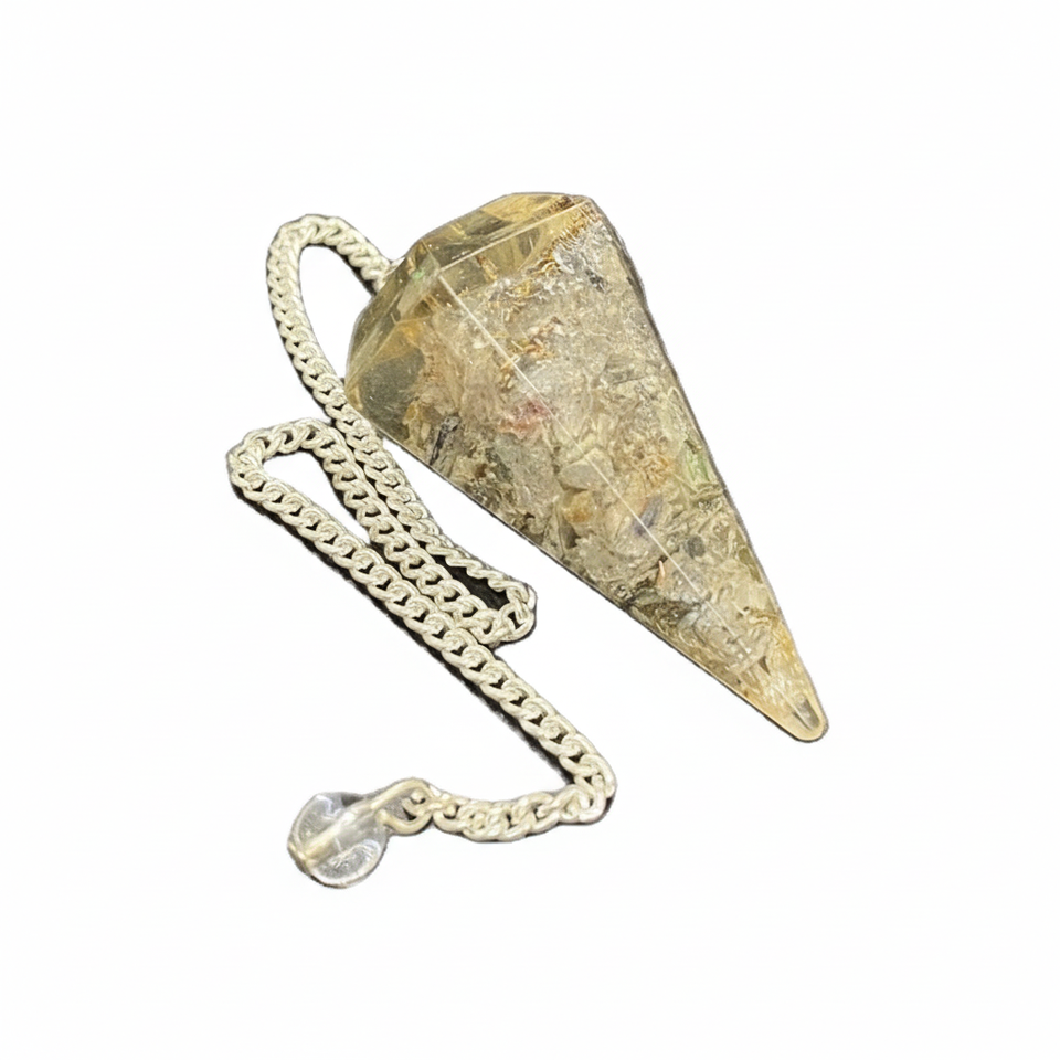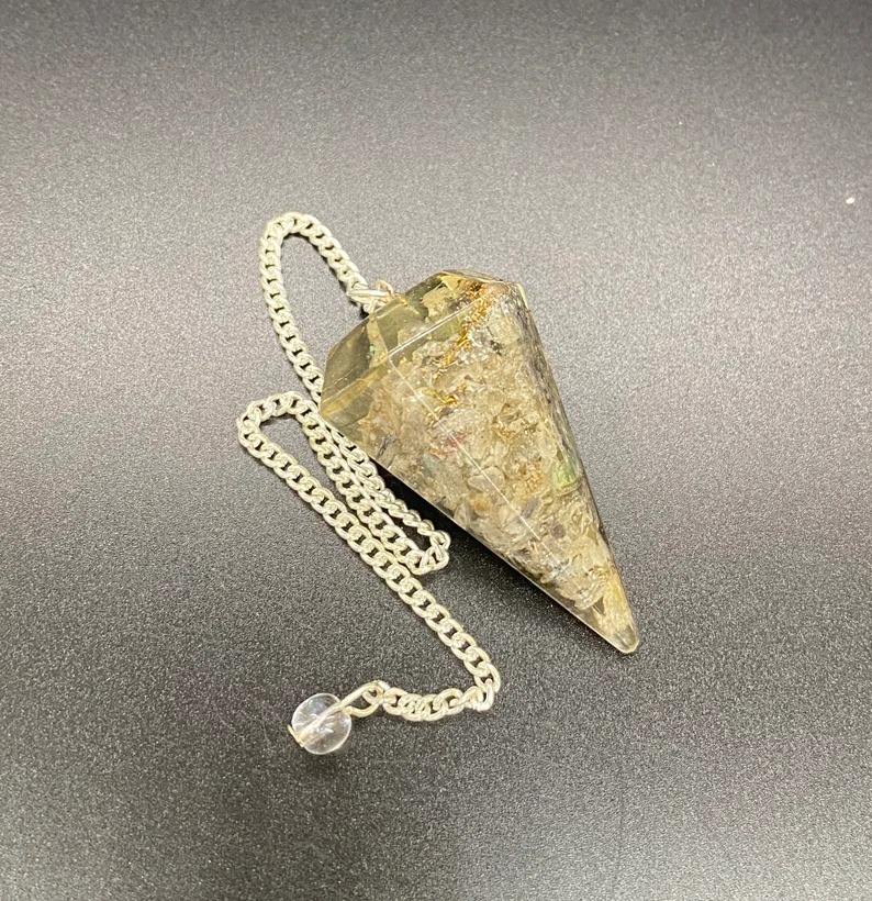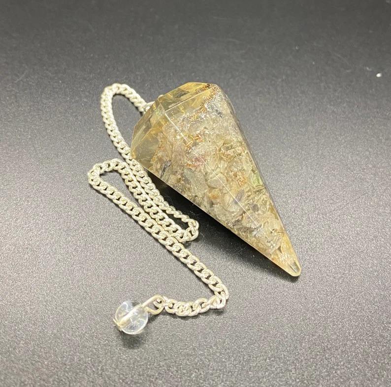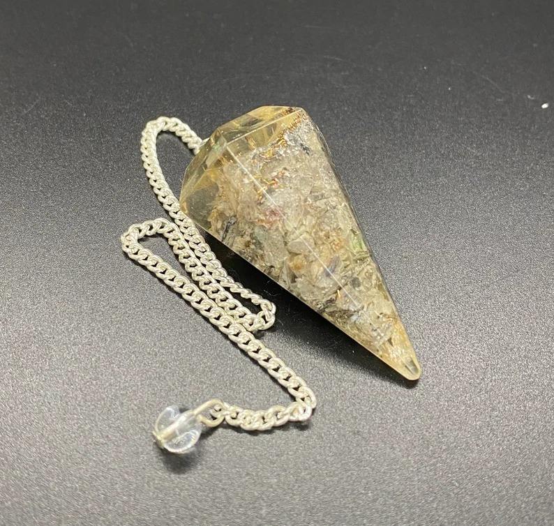 คริสตัลควอตซ์อะเวนเจอรีนสีเทา รูปทรงลูกตุ้ม ประดับด้วยออร์โกไนต์ สำหรับบำบัดรักษา หินมงคลสำหรับการทำสมาธิ ของสะสมงานฝีมือคริสตัล ของที่ระลึกทำมือ