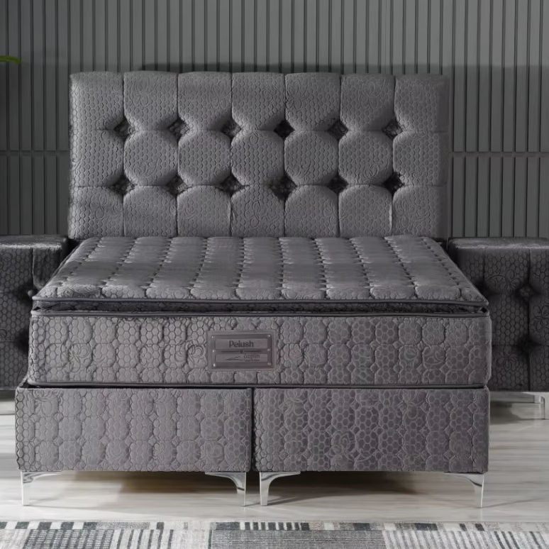 ปุ่มสีเทา-หัวเตียงหุ้มเบาะที่มีโฟมนุ่มและฐานเน้นเหล็กแบบที่3