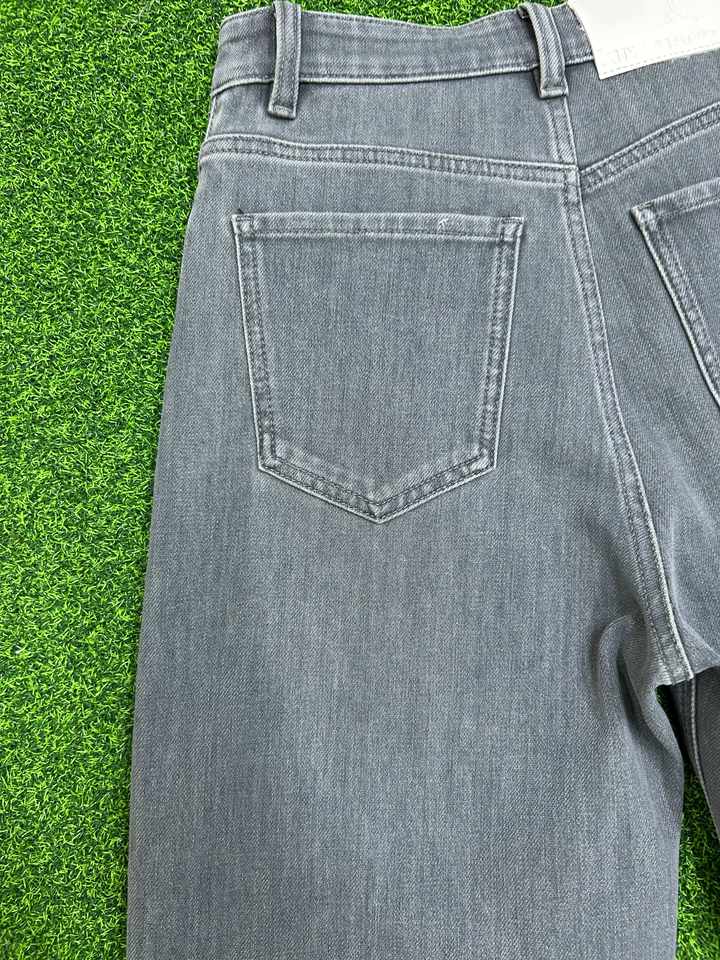 กางเกงยีนส์สีเทาขายาวสำหรับผู้หญิงกางเกงยีนส์ทรงตรงแบบลำลอง