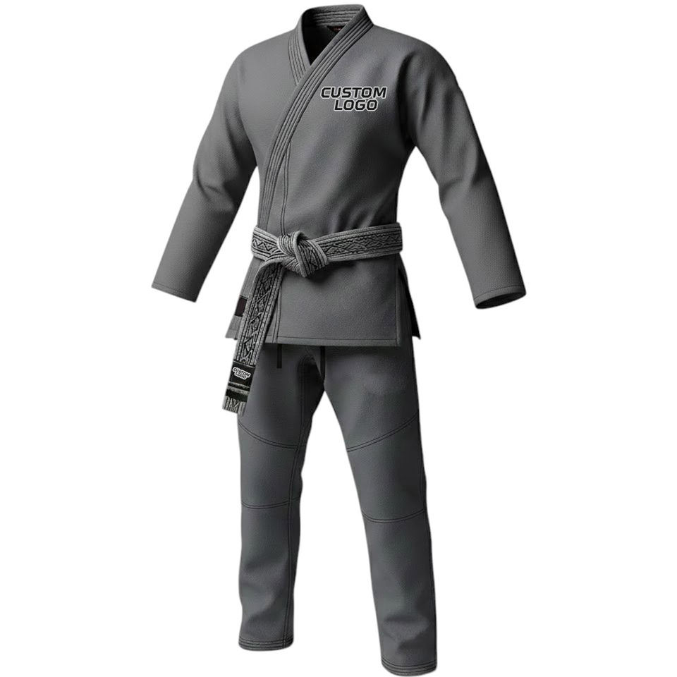 ชุดคาราเต้สีเทา ทนทาน ระบายอากาศได้ดี น้ำหนักเบา แขนยาว สำหรับฝึกซ้อม พิมพ์ลายด้านหน้าได้ตามต้องการ ชุดศิลปะการต่อสู้ ผลิตจากโพลีเอสเตอร์