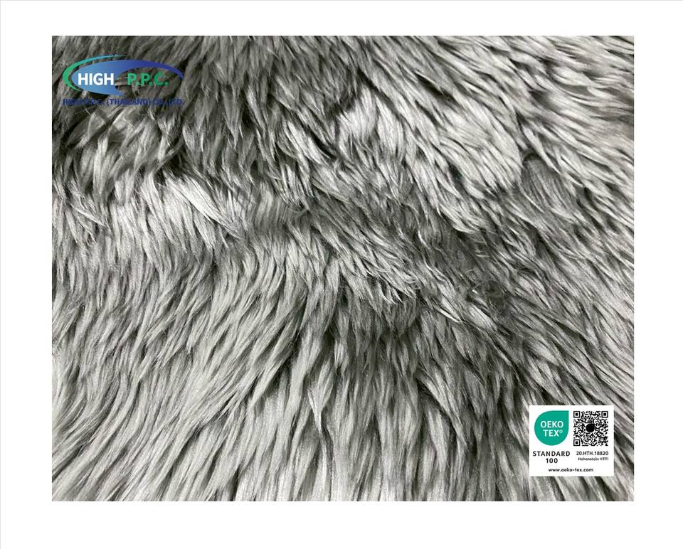 ผ้าขนสัตว์เทียมสีเทา ขนยาว 100 มม. ด้านหลังถัก 100% อะคริลิก สำหรับเสื้อผ้าและของใช้ในบ้าน จากโรงงานโดยตรง