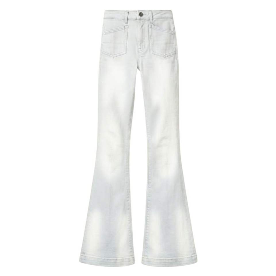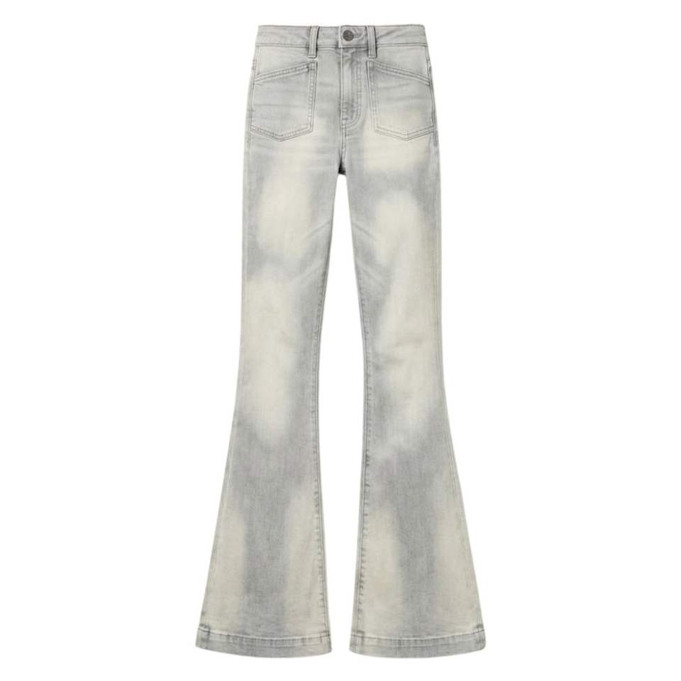 กางเกงยีนส์เดนิมสีเทาทรงบานเอวสูงสไตล์วินเทจ ลุคขากระดิ่ง ทรงเข้ารูป ยืดได้ ทรงบูทคัท กางเกงขายาวสีเทา