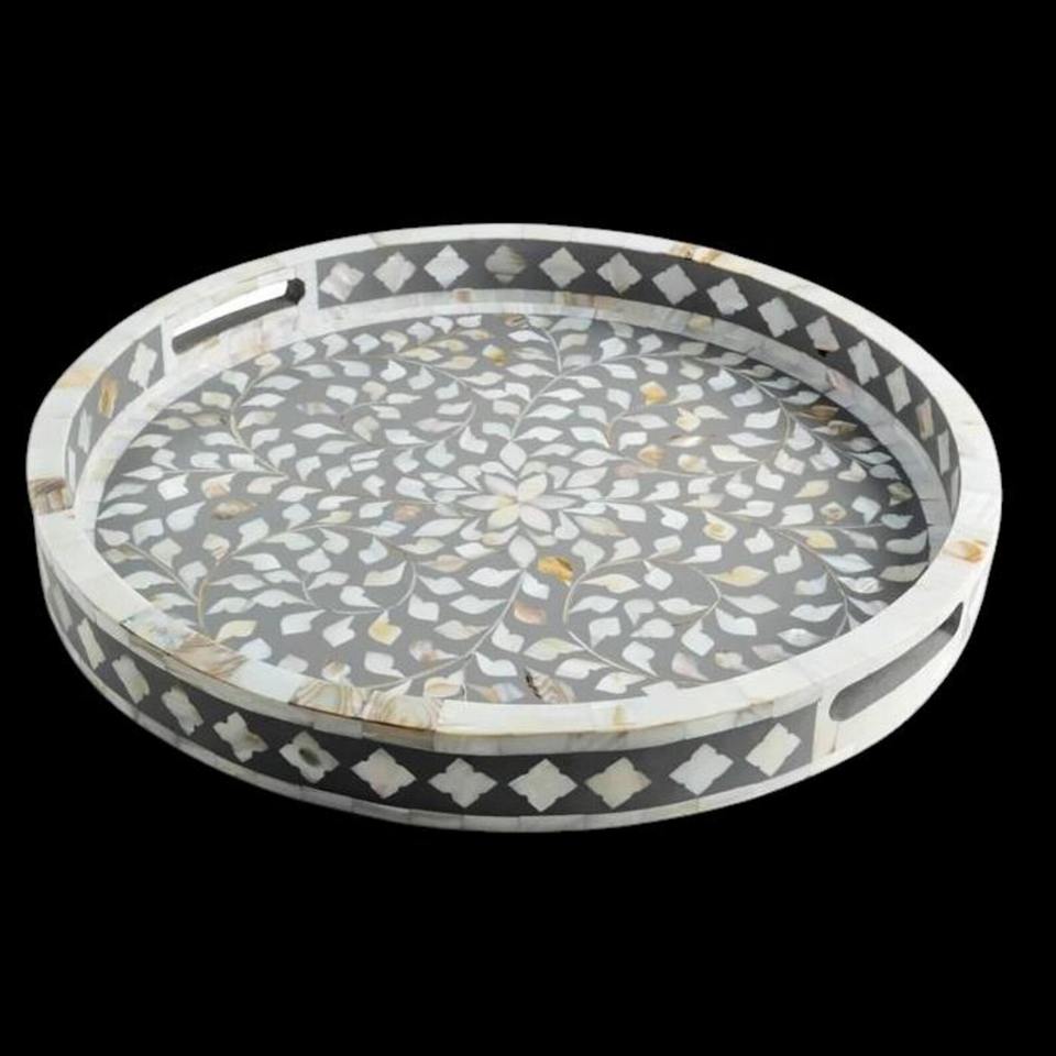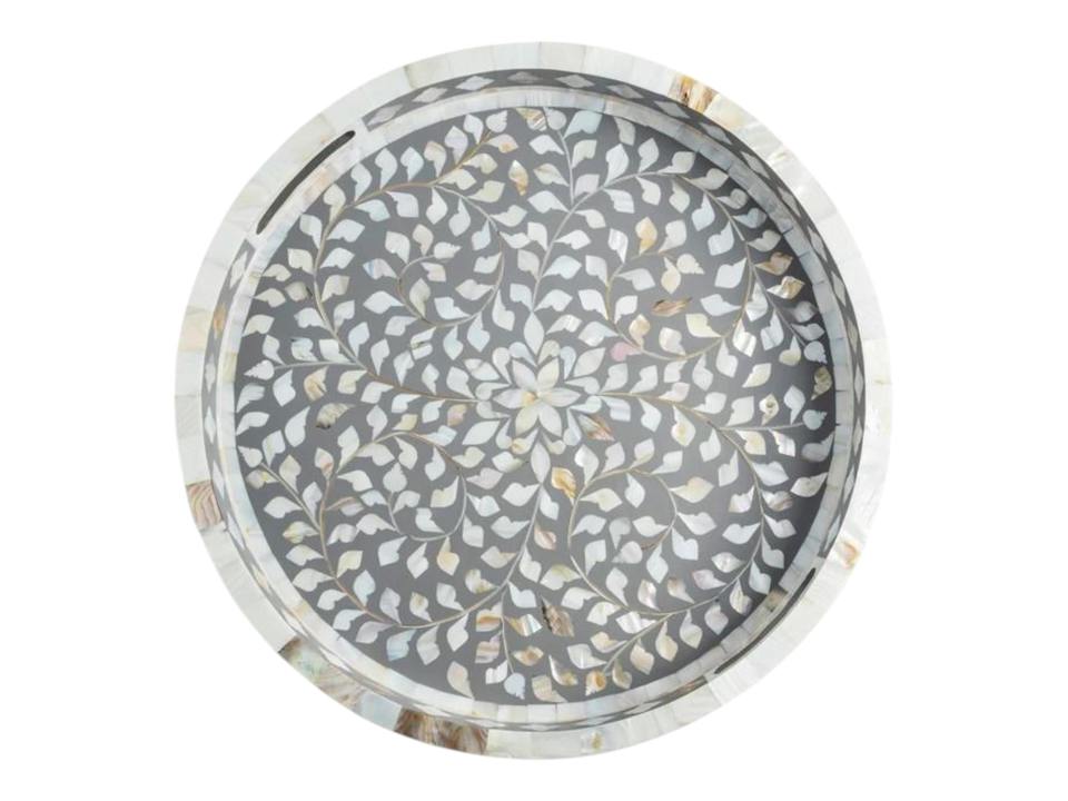 ถาดฝังกระดูกไม้ทรงกลมดีไซน์เนอร์สีเทาสำหรับตกแต่งบ้านและให้เป็นของขวัญจากอินเดีย