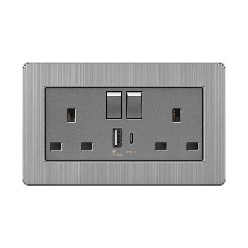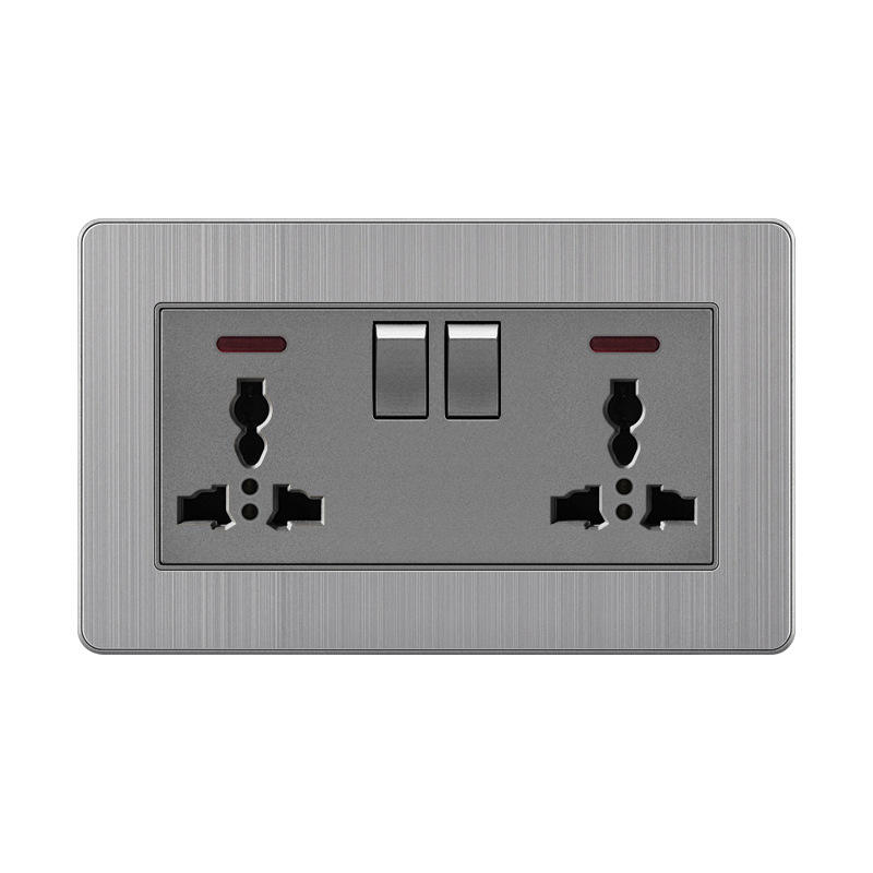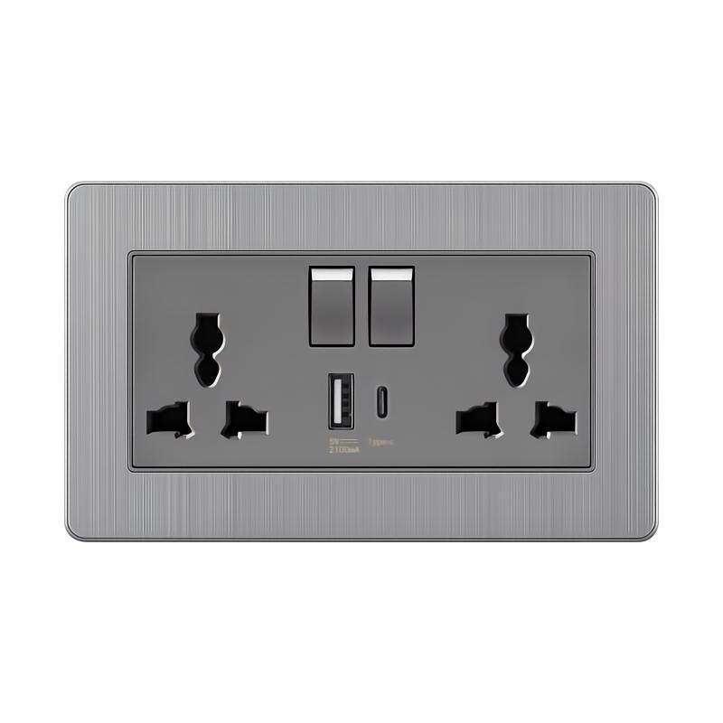 เต้าเสียบอเนกประสงค์แบบ3รูพร้อมสวิตช์ไฟสัญญาณเต้ารับติดผนังสีเทา