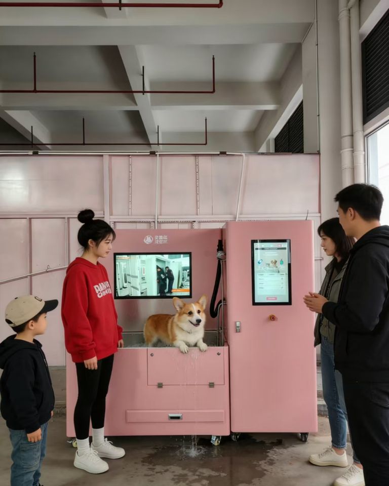 เครื่องล้างสัตว์เลี้ยงอัตโนมัติสีเทา น่ารัก สำหรับสุนัขและแมว สถานีอาบน้ำแบบบริการตนเอง เครื่องจำหน่ายสินค้าอัตโนมัติ สำหรับสัตว์เลี้ยงทุกขนาด ใช้งานกลางแจ้ง