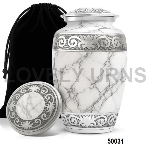 โกศบรรจุอัฐิทองเหลืองสีเทาสลักลายสำหรับบรรจุอัฐิมนุษย์