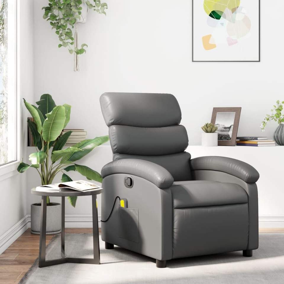 เก้าอี้นวดปรับเอนหนังเทียมสีเทาแบบมาตรฐาน