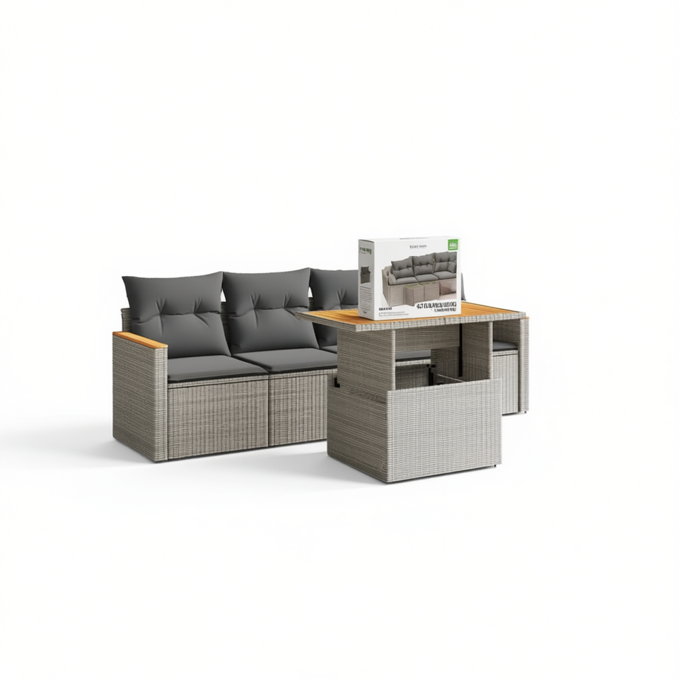 ชุดโซฟาหวายสีเทาสำหรับสวน เฟอร์นิเจอร์กลางแจ้ง 4 ที่นั่ง ดีไซน์ร่วมสมัย