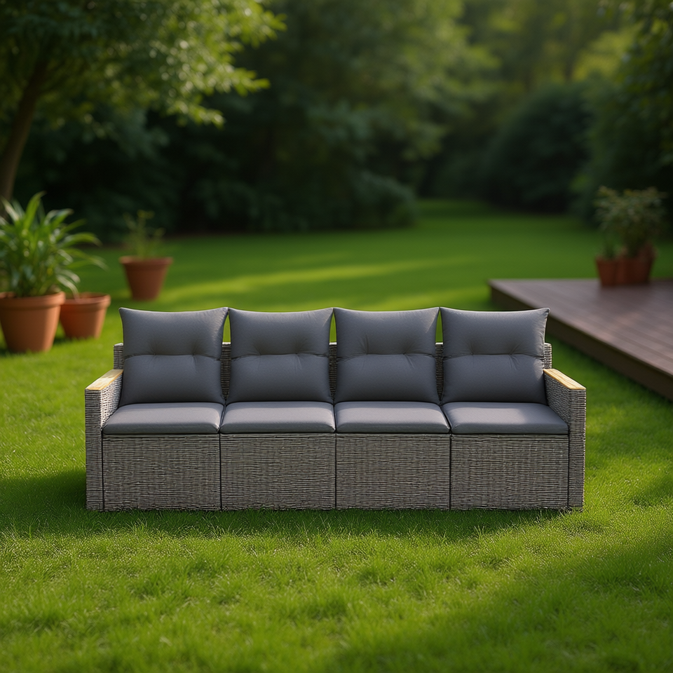 ชุดโซฟาสวนสีเทา Parese 4 ที่นั่ง เฟอร์นิเจอร์หวายสำหรับกลางแจ้ง ดีไซน์ร่วมสมัย