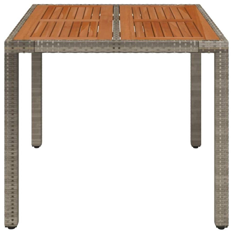 โต๊ะสวนสีเทาพร้อมท็อปโต๊ะไม้โพลีหวายลายไม้ธรรมชาติ