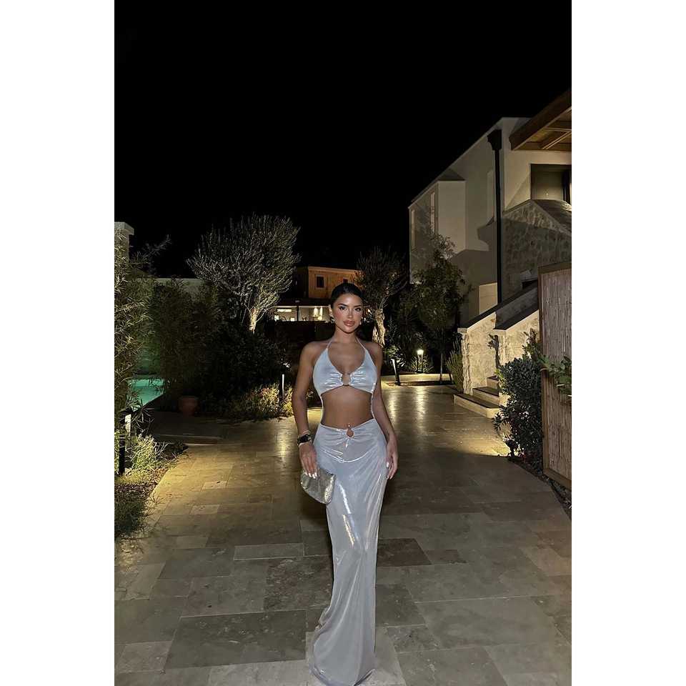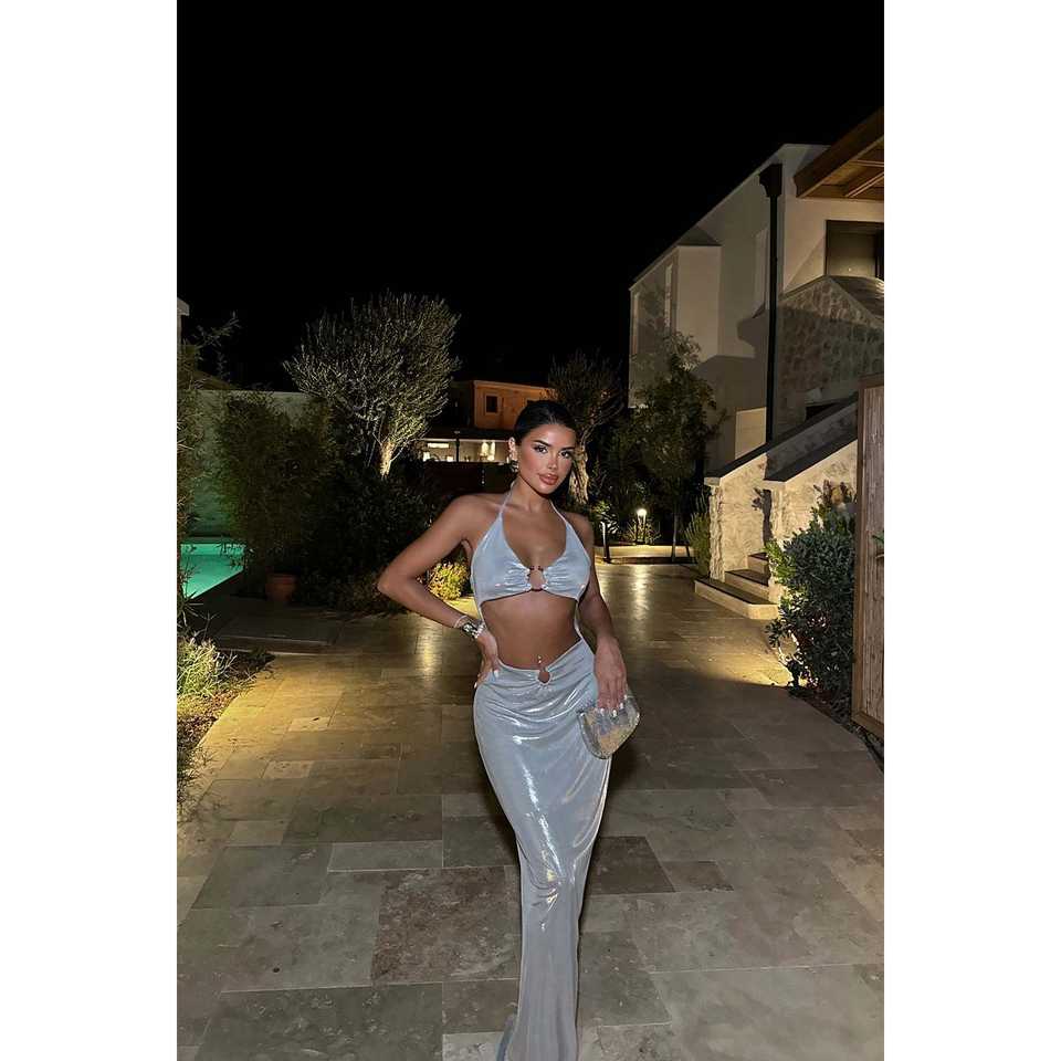 ชุดราตรียาวกรีฮาลิน่าสีเทา คอสูง แต่งเลื่อมเป็นชั้นๆ สไตล์เดรป สำหรับงานเลี้ยงอย่างเป็นทางการ