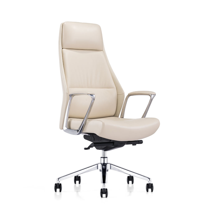เก้าอี้สำนักงานหนัง PU สีเทาสูงพร้อมราวจับโครเมียมเก้าอี้สำนักงานหนัง PU ดีไซน์ทันสมัย