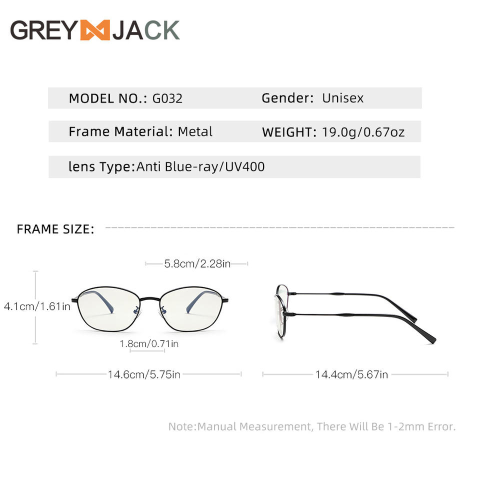 กรอบแว่นตาเกรย์แจ็คแคทอายแบบเต็มกรอบป้องกันแสงสีฟ้าสำหรับทุกเพศแว่นตาโลหะ G032OP