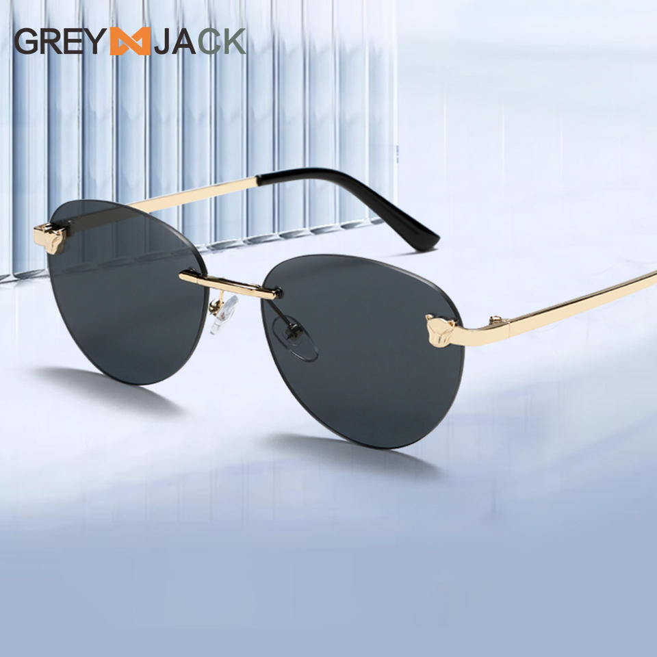 แว่นกันแดดทรงวงรีไร้กรอบสีเทาแจ็คโลหะสีทองสำหรับทุกเพศ UV400 เลนส์พีซีคลาส 2 แว่นกันแดด S2662