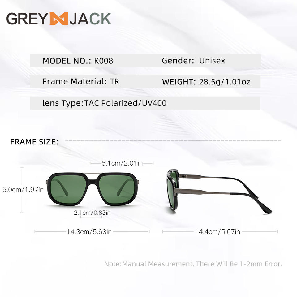 แว่นกันแดด Grey Jack K008 รุ่น Unisex กรอบ TR90 เลนส์โพลาไรซ์ TAC ป้องกันรังสียูวี 400 น้ำหนักเบา ทนทาน เหมาะสำหรับกีฬากลางแจ้ง