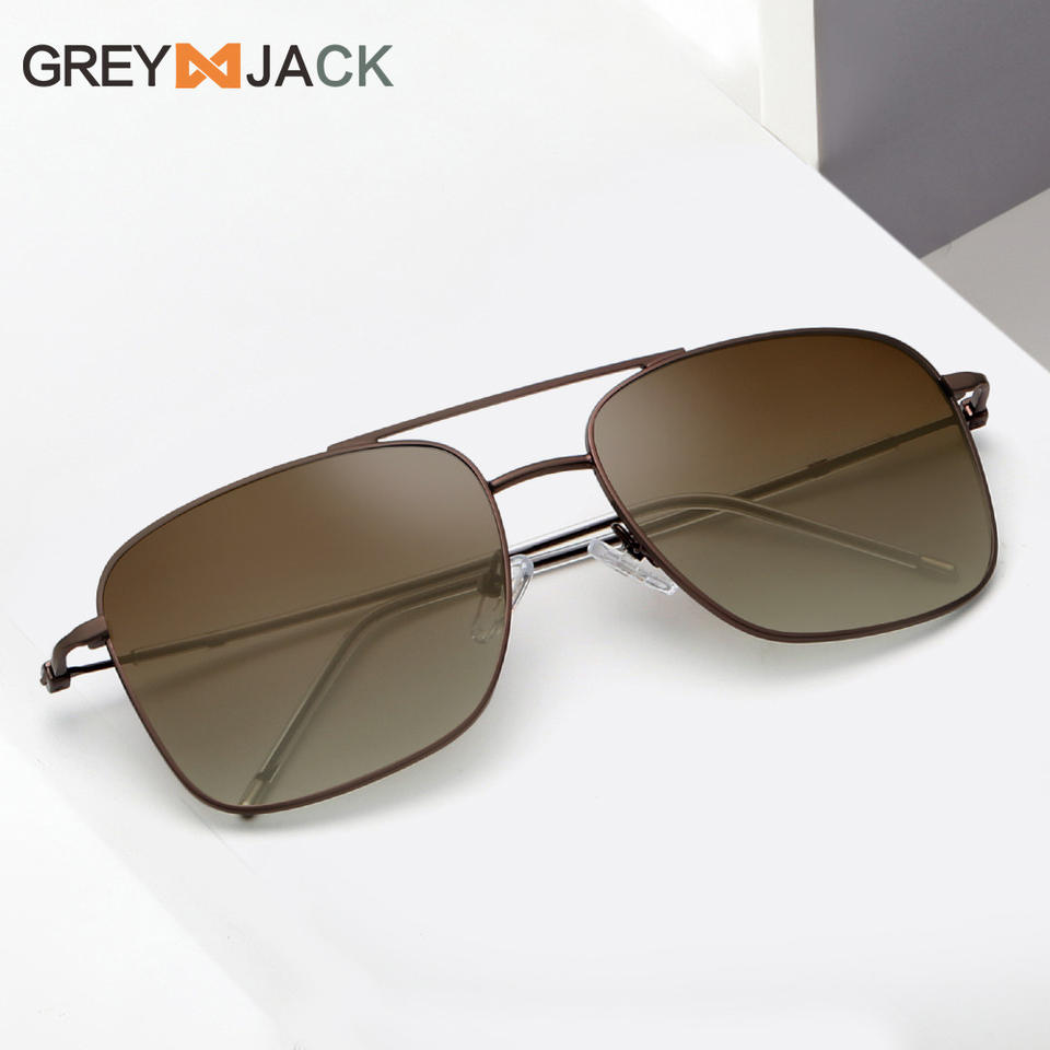 แว่นกันแดดโพลาไรซ์สำหรับผู้ชายเกรย์แจ็คกรอบโลหะเลนส์ TAC ป้องกันรังสียูวี 400 ประเภท 3 แว่นกันแดดสีทอง