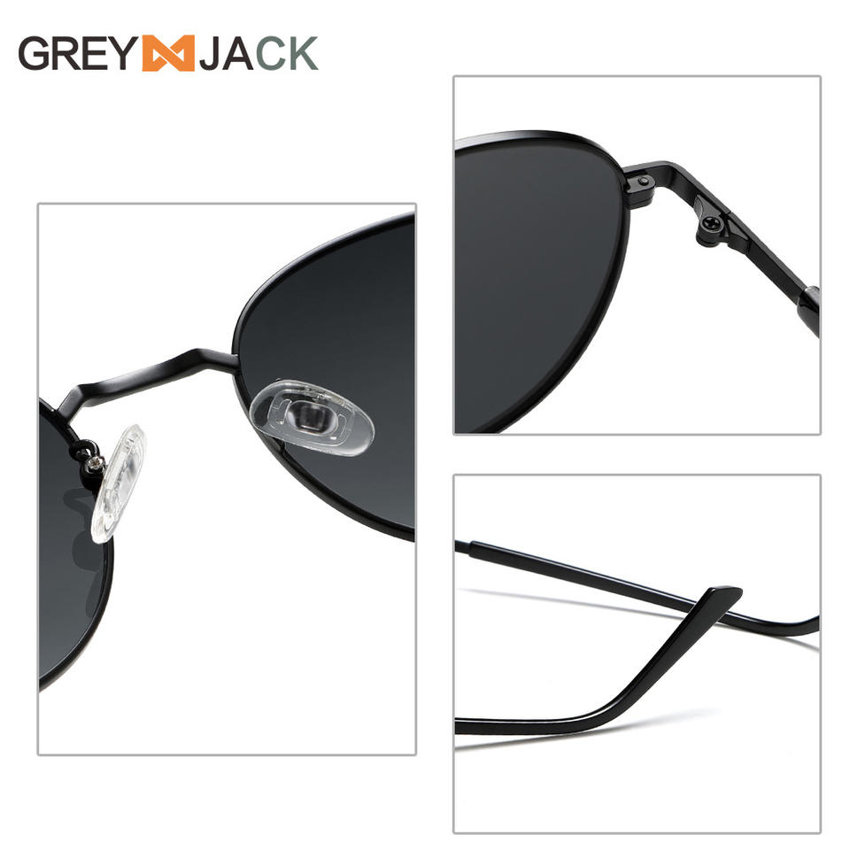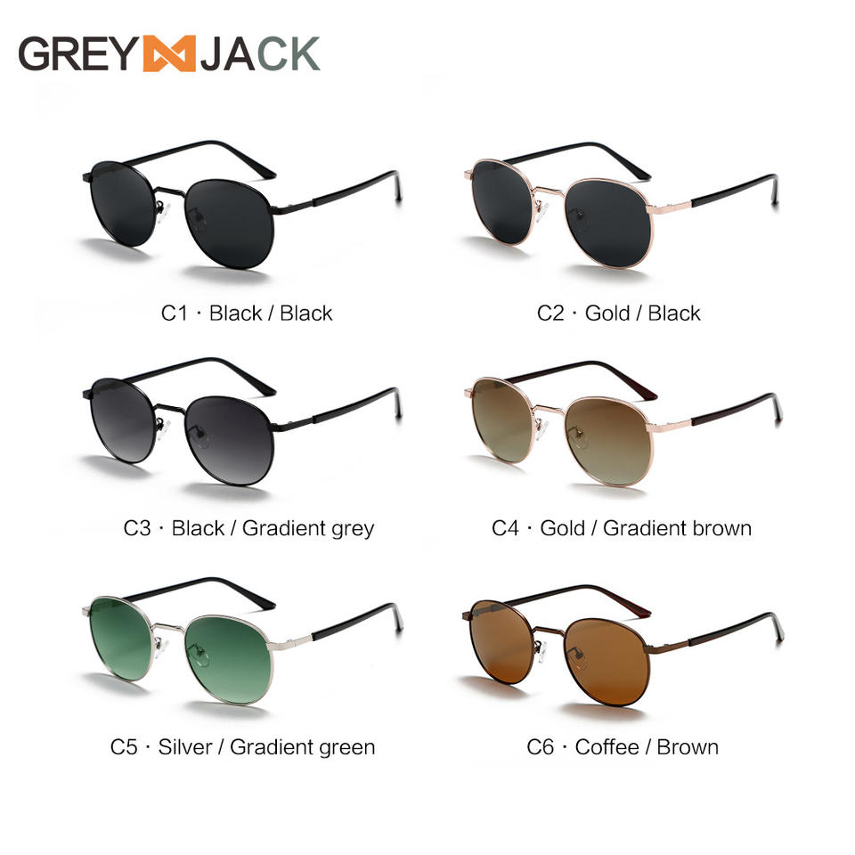 แว่นกันแดดทรงกลมเกรย์แจ็คเมทัลสีดำ ยูวี 400 โพลาไรซ์ เลนส์ TAC ประเภท 3 ที่บังแดด