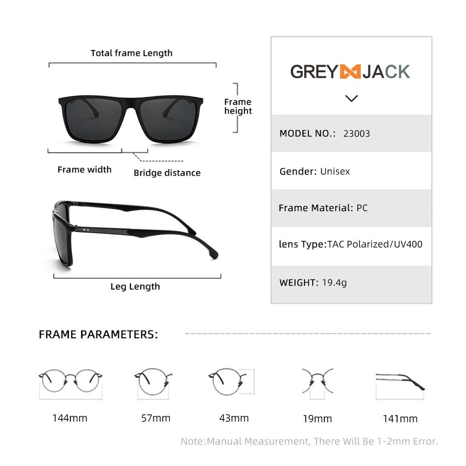 แว่นกันแดดโพลาไรซ์สีเทา รุ่น Grey Jack ป้องกันรังสียูวี 400 กรอบพลาสติก เลนส์ TAC มองเห็นได้ในเวลากลางคืน เหมาะสำหรับทุกเพศ ใช้สำหรับกิจกรรมกลางแจ้ง ขับรถ และเล่นกีฬา