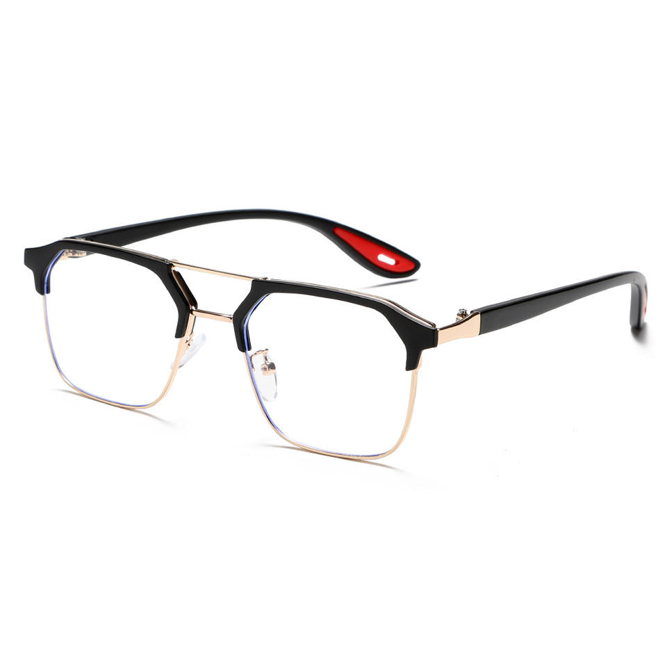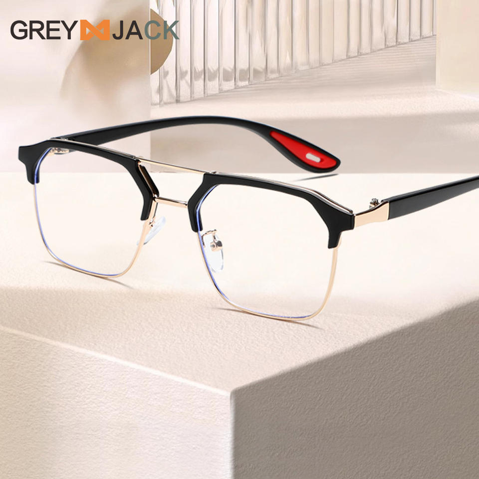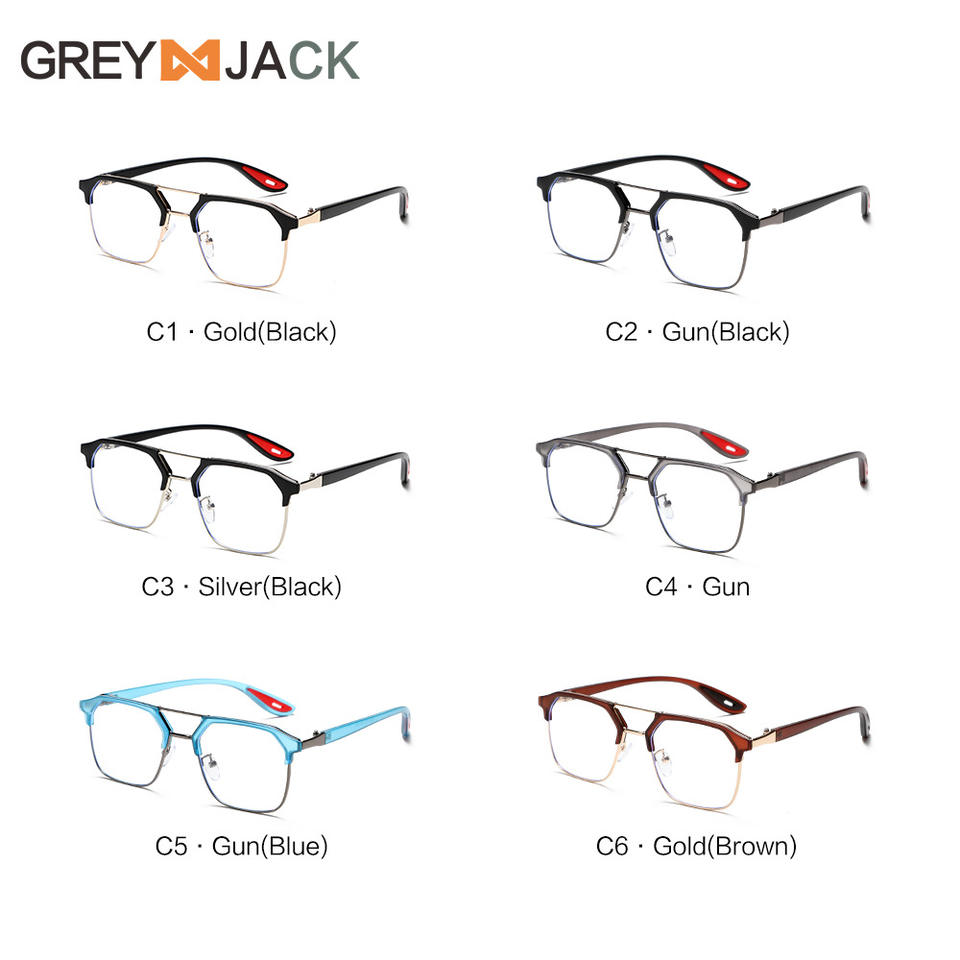 กรอบแว่นตาสีเทาทรงสี่เหลี่ยมแบบ Double Bridge ป้องกันแสงสีฟ้า เลนส์ใส Unisex รุ่น 8329