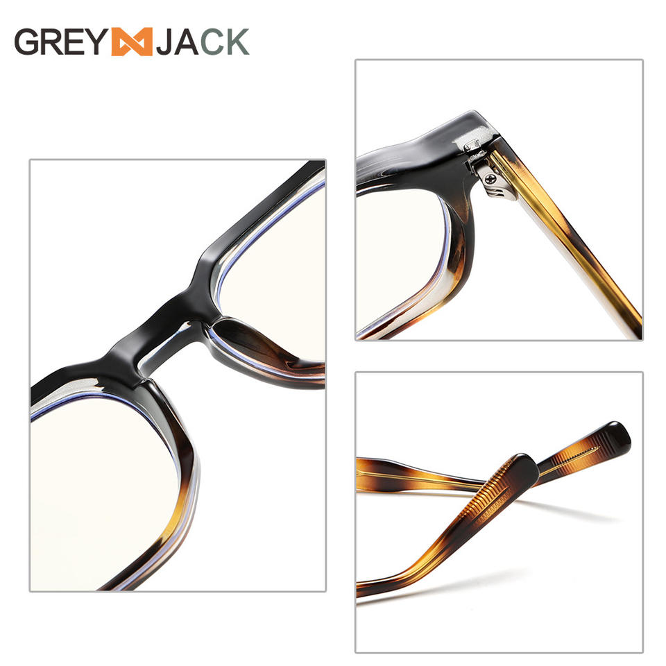 กรอบแว่นตาทรงรีสีเทาแจ็ค เรโทรป้องกันแสงสีฟ้าสำหรับผู้หญิง เลนส์พลาโน วัสดุ TR90 แบบเต็มกรอบ