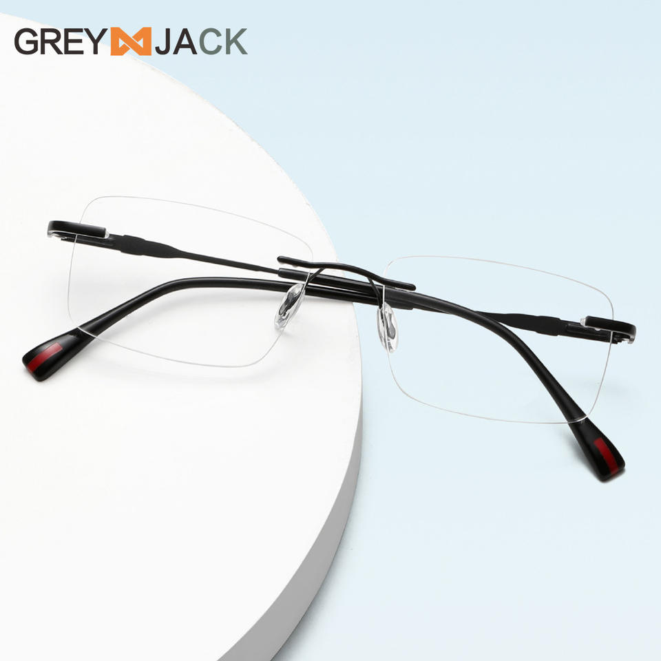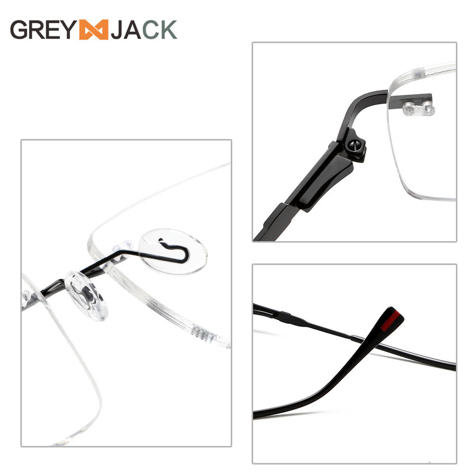 แว่นตาไร้กรอบสีเทา รุ่นแจ็ค กรอบโลหะ เลนส์อะคริลิก สำหรับทุกเพศ สไตล์ธุรกิจสุดหรู ขาแว่นยืดหยุ่น