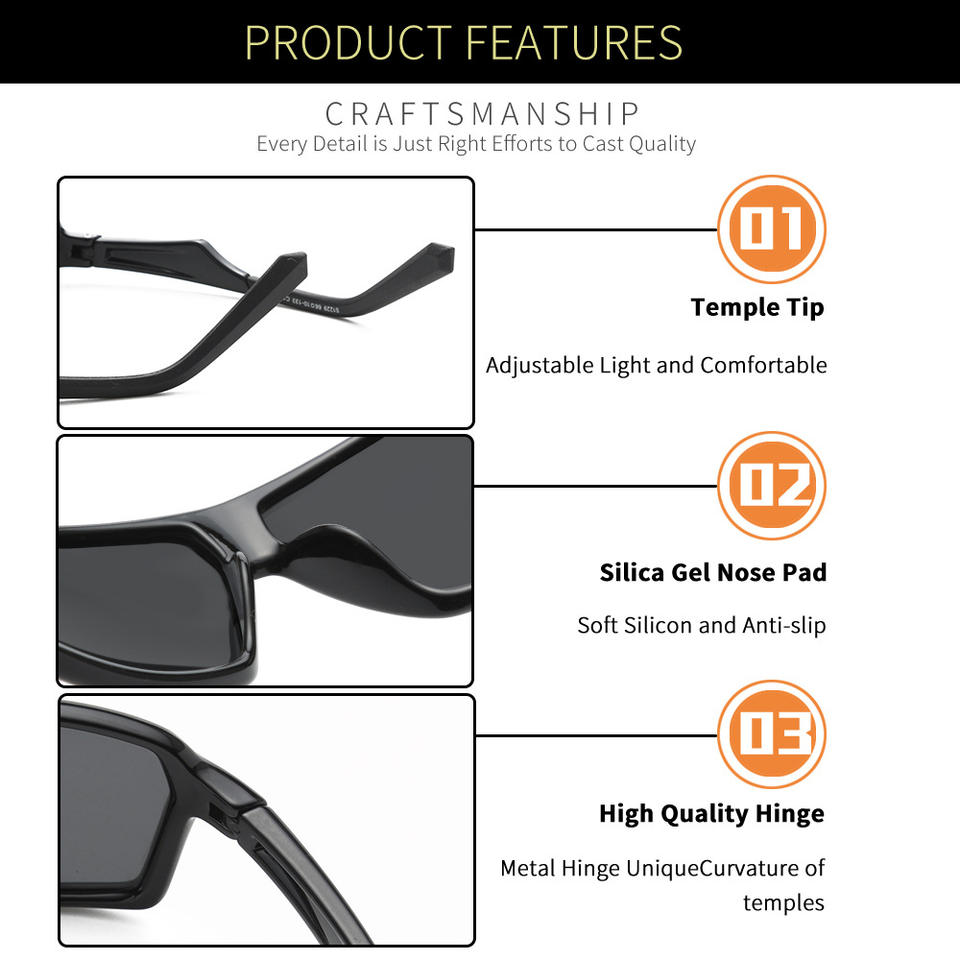 แว่นกันแดดแนวสปอร์ตมีแจ็คสีเทากรอบ TR90เลนส์โพลาไรซ์ UV400 TAC ดีไซน์สี่เหลี่ยมกรอบเต็ม