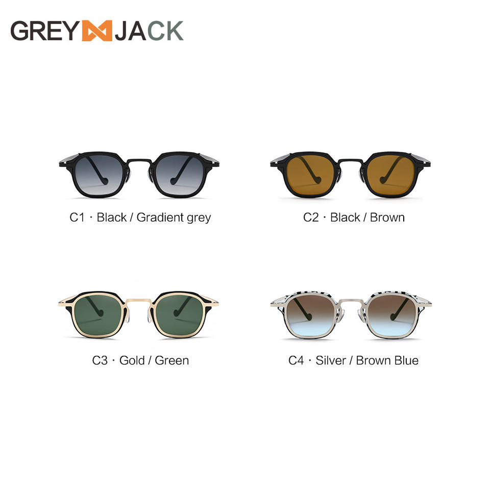 แว่นกันแดดทรงสี่เหลี่ยมสีเทา กรอบสีดำทอง ป้องกันรังสียูวี 400 เลนส์ TAC สำหรับทุกเพศ สแตนเลสสตีล วัสดุผสมพีซี