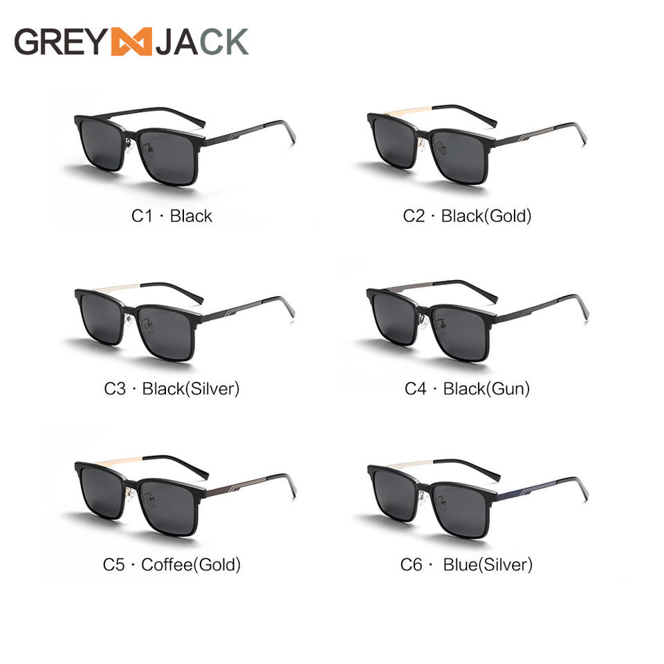 แว่นกันแดดสีเทาแจ็คสแตนเลส UV400โพลาไรซ์สำหรับผู้ชายกันแสงสีฟ้าน้ำหนักเบาทนทาน C1C2C3C4C5C6กันแดดแฟชั่น