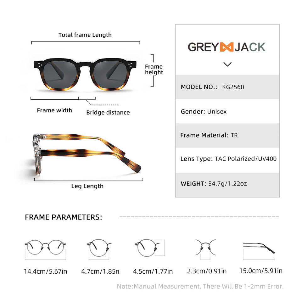 Grey Jack Unisex Polarized Sunglasses UV400 TR Metal Frame TAC Lens Type 3 Sunshades For Driving