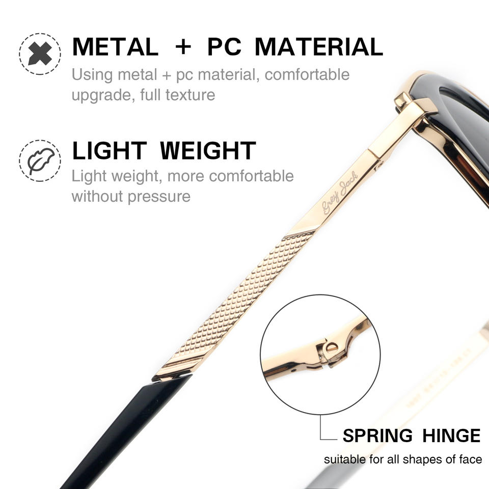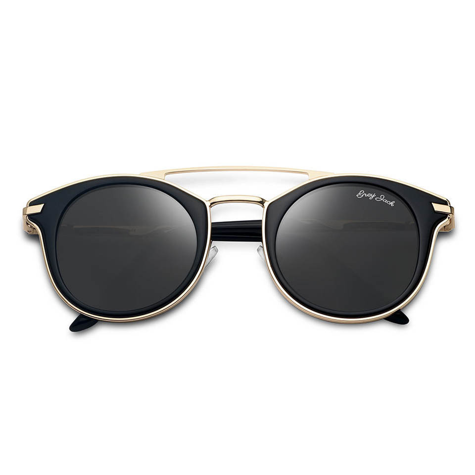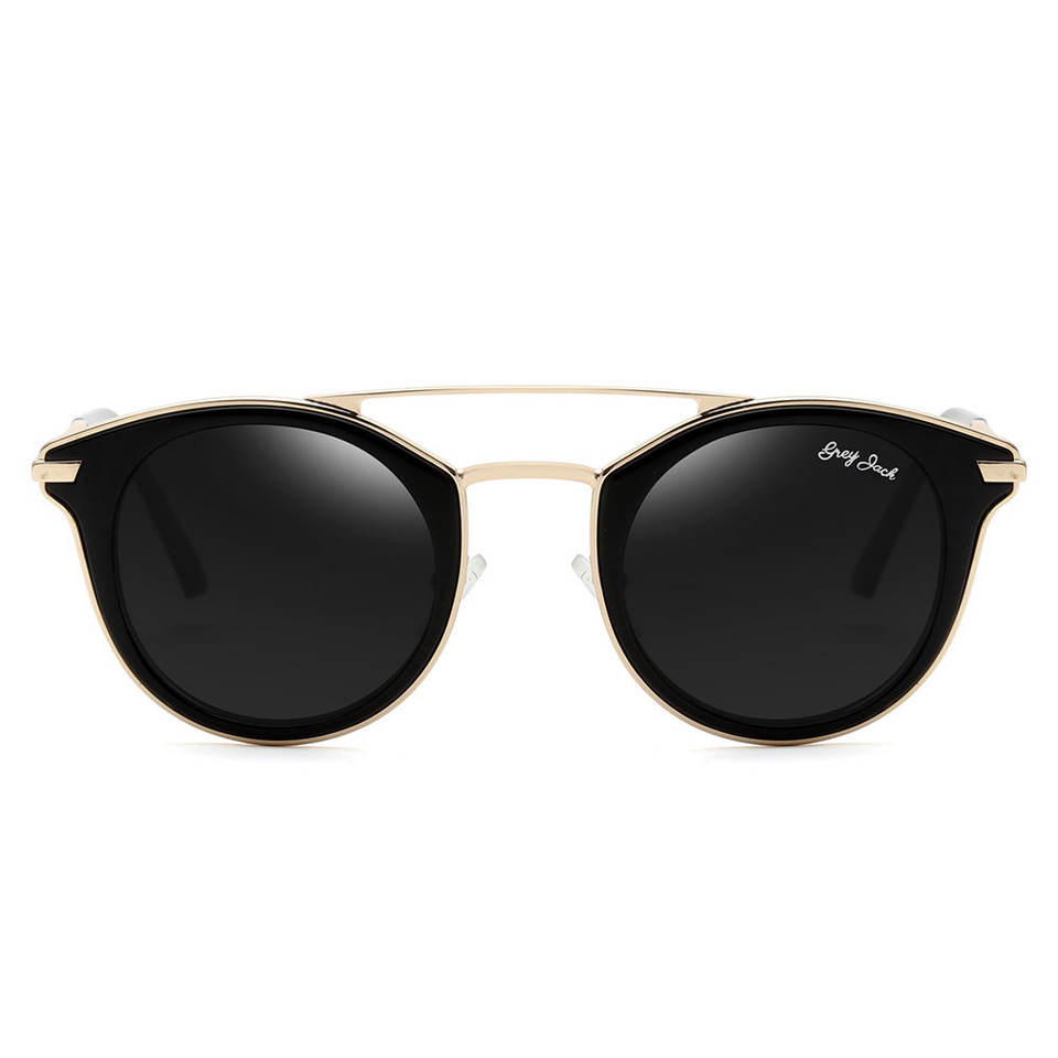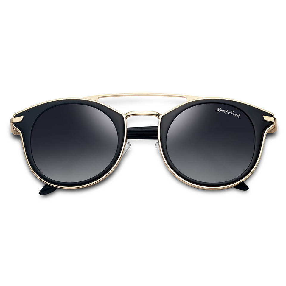 แว่นกันแดดโพลาไรซ์ทรงกลมสำหรับผู้หญิงเกรย์แจ็ค UV400 เลนส์ TAC กรอบโลหะแฟชั่น 1607